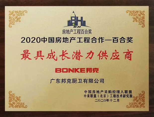 【捷報】邦克廚衛榮獲2020中國房地產工程合作?百合獎“最具成長潛力供應商”