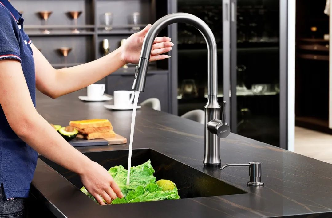 我們的雙手因為準備食物變臟而無法潔凈、優雅地關閉龍頭,邦克梵拉智能龍頭可以保證通體清潔,節約用水。邦克梵拉智能龍頭內置電子裝置,身體通過觸摸水龍頭的可感應部位,從而潔凈、隨心地啟停龍頭出水,代替了傳統的杠桿原理。另外,當使用者在廚房用水洗手時,水龍頭會提供充足的水量,當使用者未關水離開時,控制閥超過3分鐘自動斷水,防止“水漫金山”損壞您寶貴的廚柜和家居空間,實現節水,細菌不沾手,結合獨特的美學設計,誰能想到龍頭也能成為藝術品?