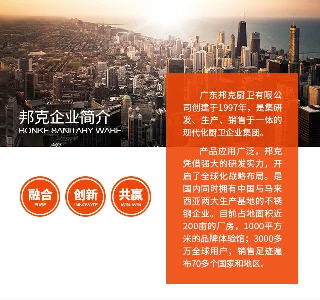 邦克不銹鋼廚衛(wèi)五金產(chǎn)品遠(yuǎn)銷全球70多個國家和地區(qū),品牌和服務(wù)獲得眾多客戶盛譽(yù);自有中國與馬來西亞兩大生產(chǎn)基地,配合自動化生產(chǎn)線,實(shí)現(xiàn)匠心智造;產(chǎn)品原材料嚴(yán)格甄選食品級304不銹鋼,品質(zhì)效果卓著;24年經(jīng)驗(yàn)積累,24小時專業(yè)服務(wù),一對一技術(shù)指導(dǎo),全力配合合作伙伴,共同發(fā)展。