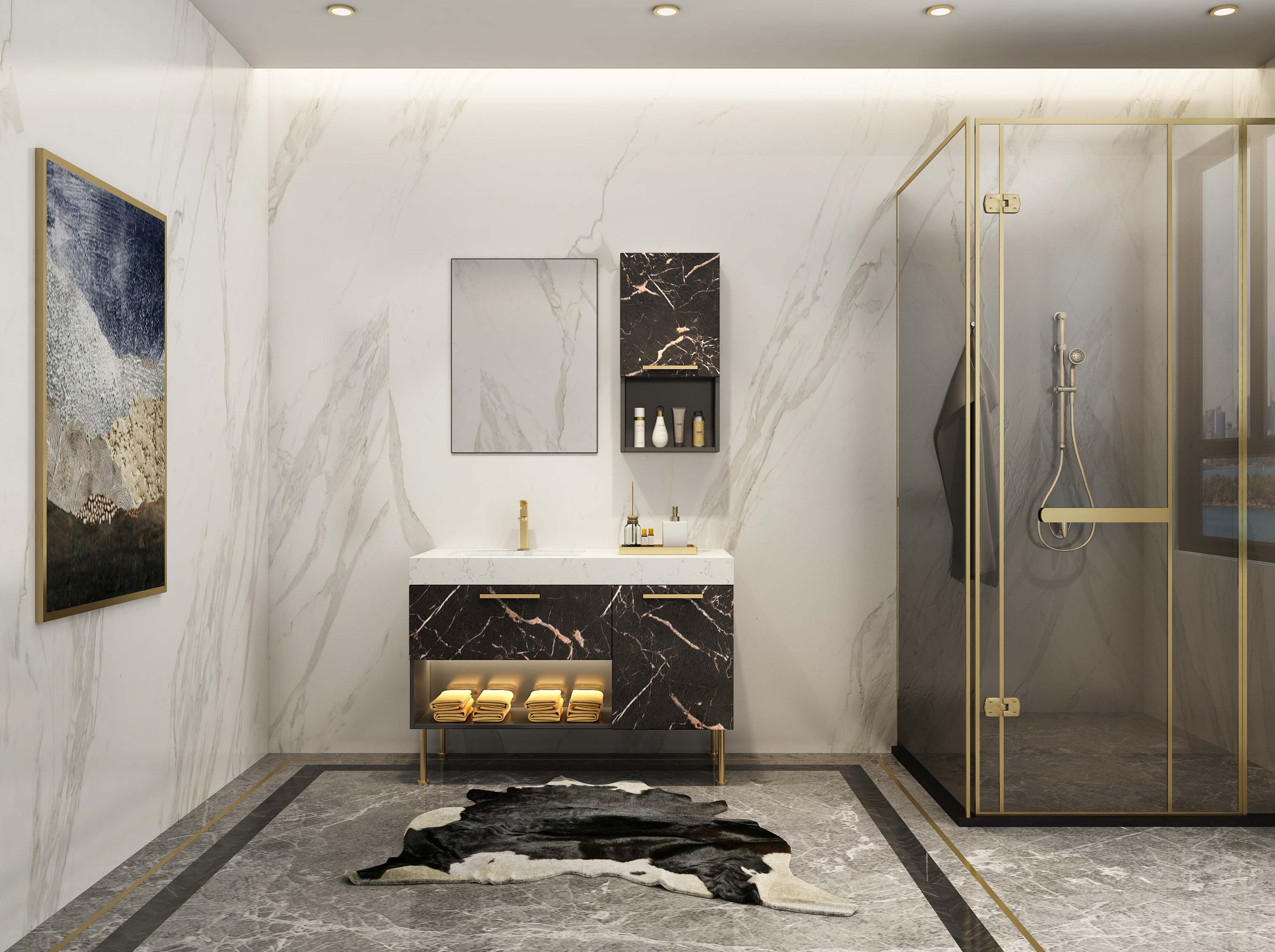 在產(chǎn)品創(chuàng)新設(shè)計方面,邦克不銹鋼浴室柜堅持原創(chuàng)設(shè)計,或顏色渲染大膽,或材質(zhì)創(chuàng)新改動,大膽運用巖板等材質(zhì),或搭配大面積鏡面,邦克不銹鋼浴室柜總能讓用戶感受到空間延伸感,締造出輕奢精致的畫面美感。