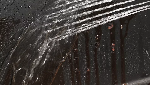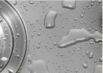 水槽布滿比水滴還少的乳突,乳突間形成的空氣形成納米級(jí)厚的薄膜,使水滴因自身張力,納米涂層疏油疏水,滴水成珠,水滴自由滾動(dòng),油污易被清水沖洗,形成輕松自潔的狀態(tài)。