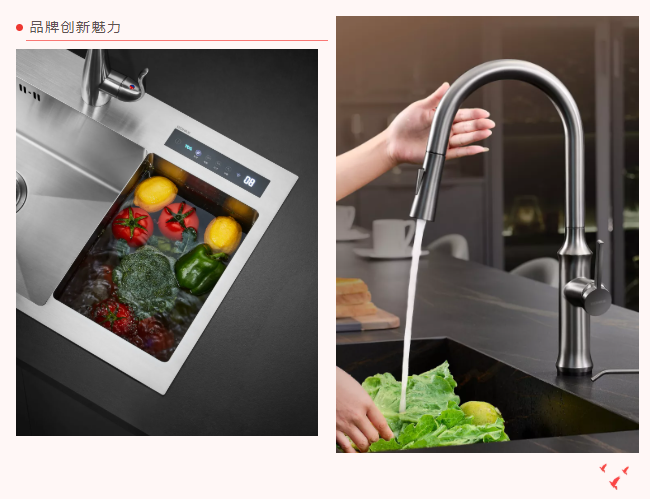 今年,邦克聚焦全屋定制和智能廚衛(wèi)功能五金產(chǎn)品,打造場景化智能家居生態(tài)。在現(xiàn)有產(chǎn)品矩陣的基礎(chǔ)上,創(chuàng)新推出全新原廠設(shè)計的水觸媒智能凈化水槽、梵拉智能觸控水龍頭、洗杯器手工水槽、小蠻腰出水龍頭等系列新品,充分詮釋了國潮品牌的創(chuàng)新魅力。