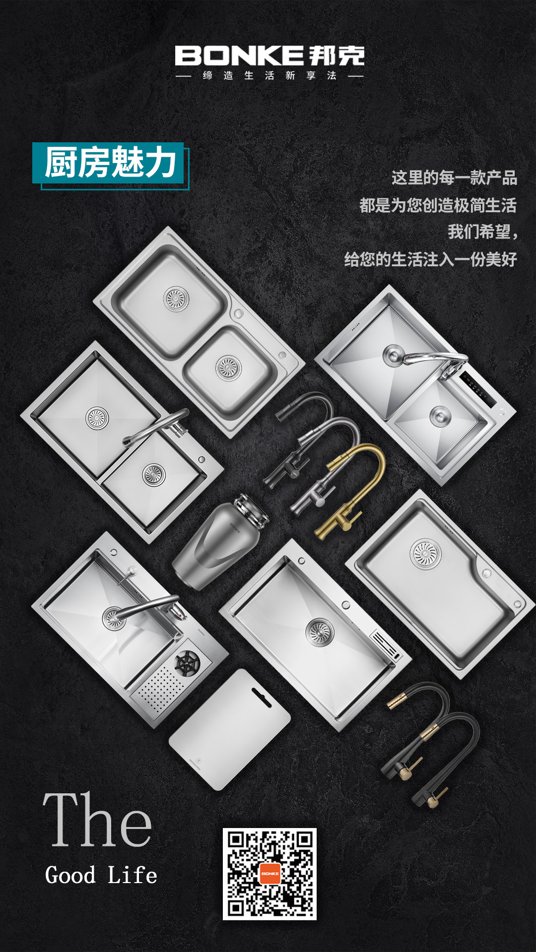 邦克作為家居五金行業的領導者,不斷為消費者打造場景化智能家居生態,深耕至智能廚衛等各大生活家居板塊。圍繞現代廚房對烹飪和洗滌的需求,邦克推出了包括水易凈系列水槽、梵拉智能觸控龍頭、水觸媒智能水槽、洗杯器手工水槽、小蠻腰水龍頭等一系列標準化、集成化智能廚衛五金產品。以頗具藝術氣息的創意靈感為基點,將其特質融入產品中,營造別具一格的廚房氛圍外;在五金選材與設計工藝上也是匠心獨具,大大提高了櫥柜的使用舒適度與耐用性,帶給消費者獨一無二的體驗盛宴。