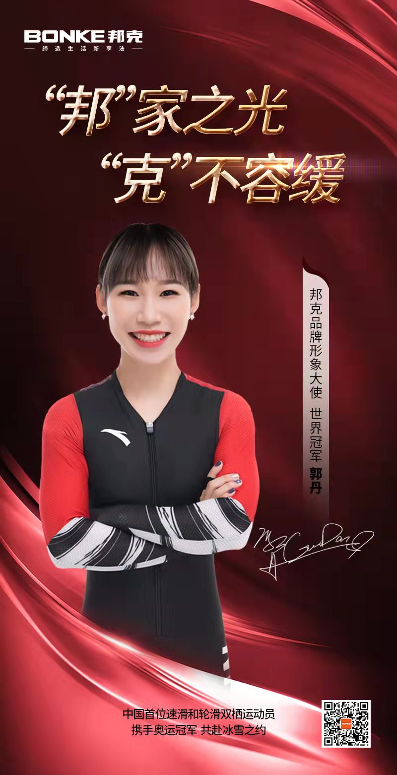 攜手世界冠軍,共赴冰雪之約!邦克為中國全體運動健兒們加油!為中國速度滑冰隊吶喊!預祝品牌形象大使郭丹不斷突破自我,再創佳績!