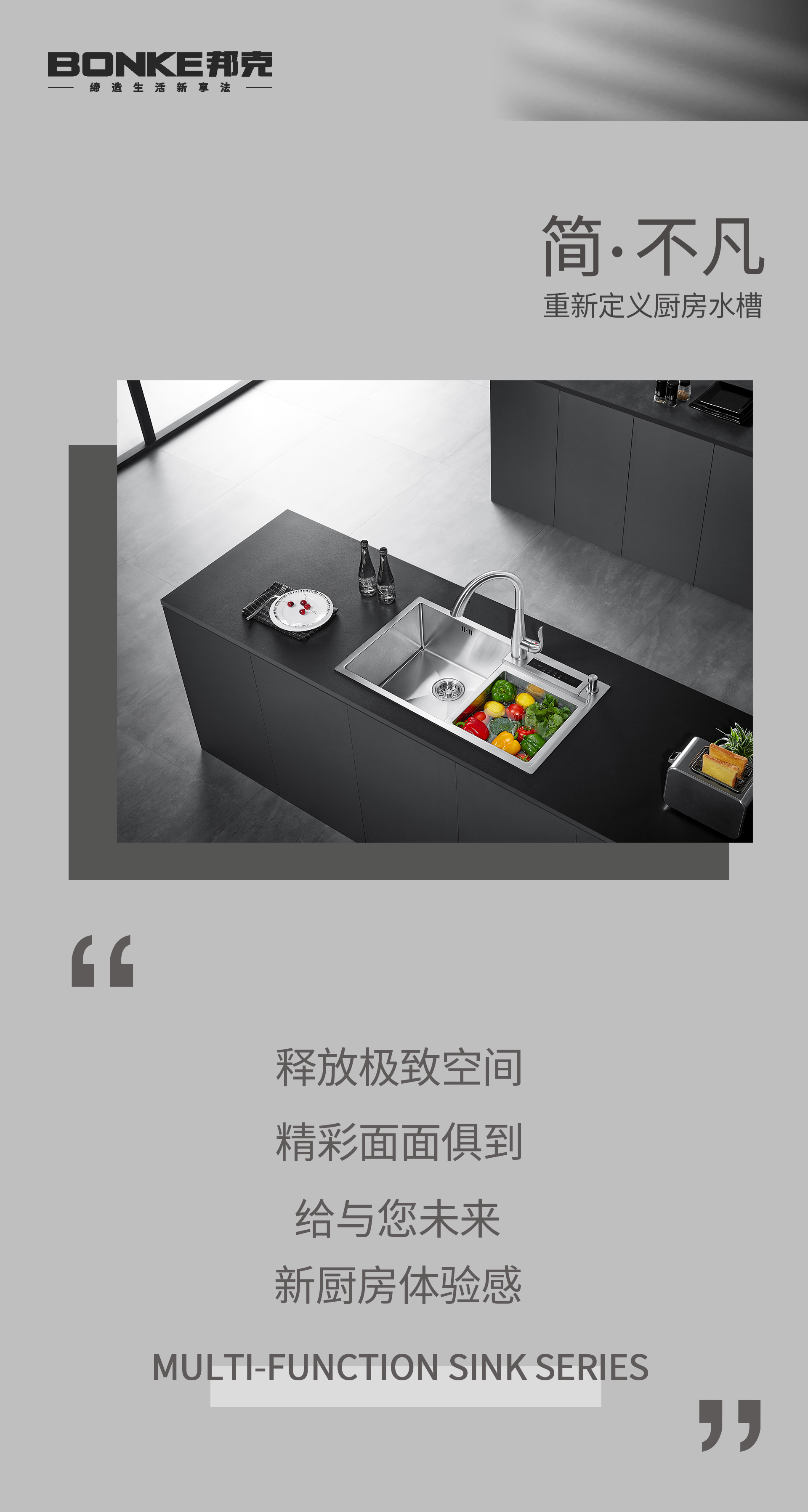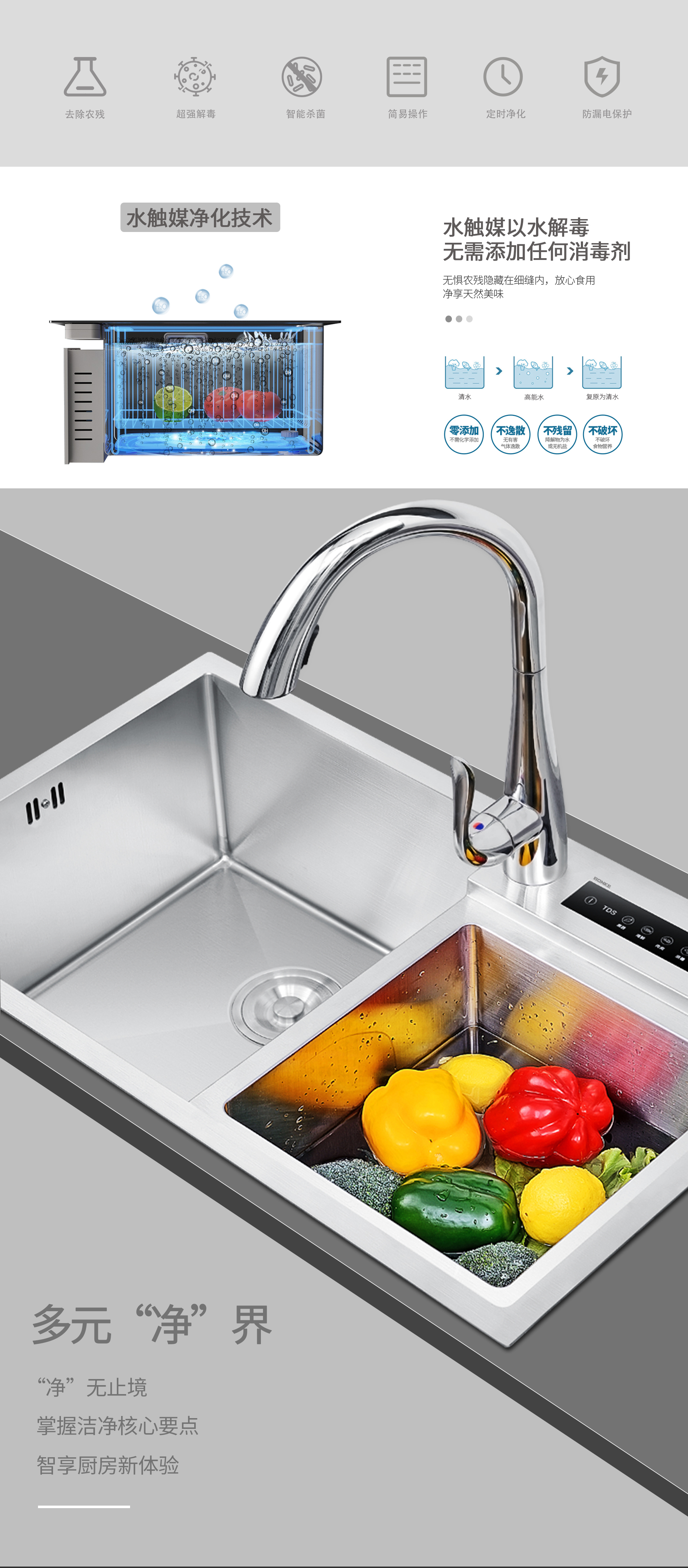 多元“凈”界丨邦克水觸媒智能凈化水槽,重新定義廚房新標準