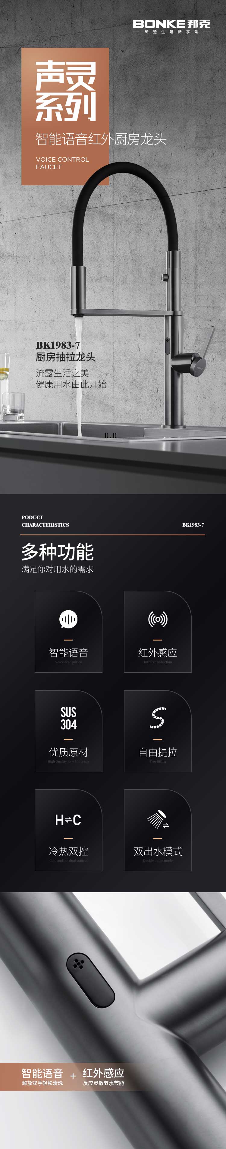 邦克新品丨智能語音紅外廚房龍頭,開啟廚房新詩篇