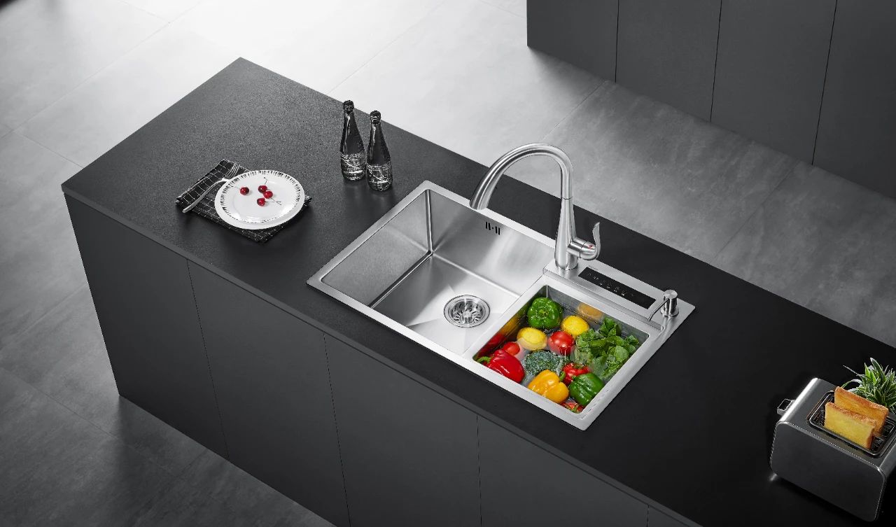 邦克水觸媒智能凈化廚房水槽,水槽凈洗二合一,水觸媒能夠高效安全祛除農藥殘留、激素、細菌、泥沙,滿足消費者對于健康生活所需。配備智能觸控面板操作簡單易上手,不同食材不同凈化時間,倒計時顯示工作分鐘數,一目了然、操作方便;設置水質監測系統TDS,顯示水質硬度預警,防止長期反復在高硬度水質工作,降低使用壽命和影響身體健康。