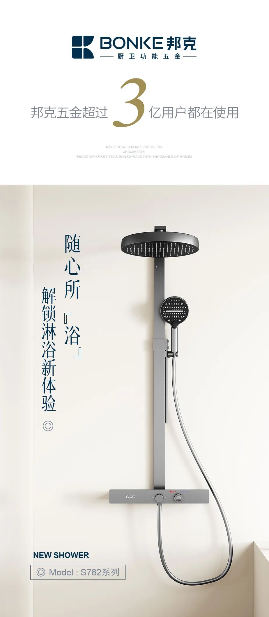 產品名稱:三功能淋浴花酒 S782CP(電鍍)/S782PH(槍灰)/S782KB(奶白)